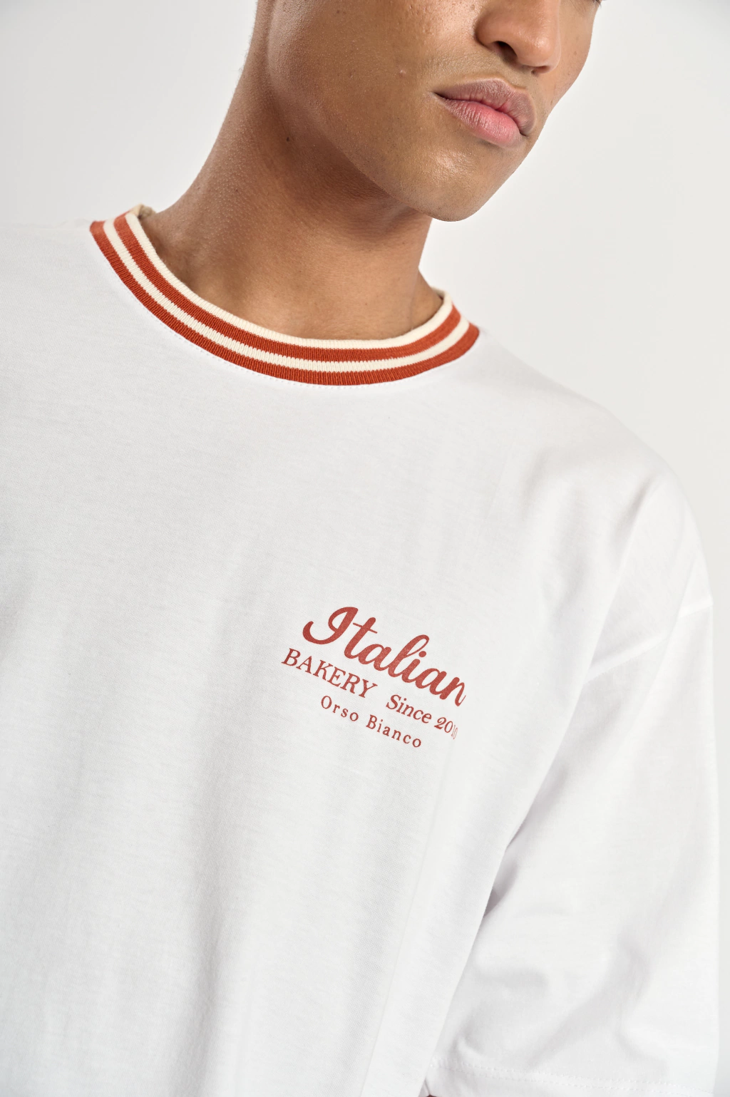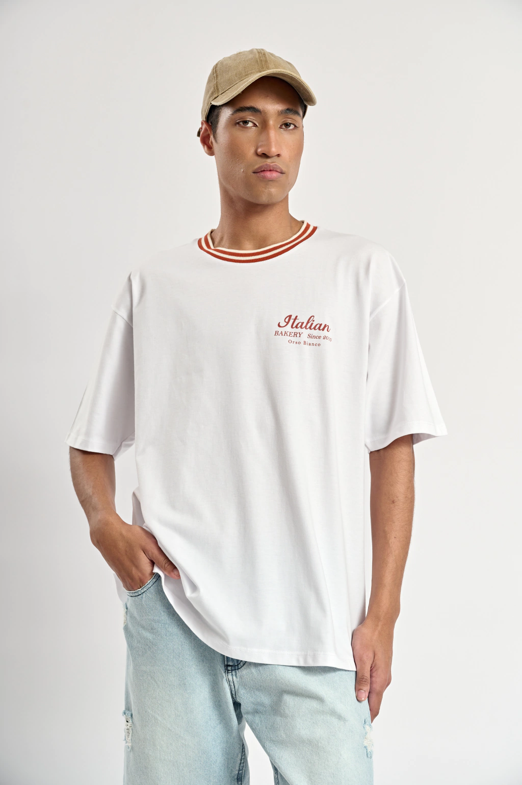 ¿Buscás comodidad y estilo en una misma prenda? La Remera Oversize "Italian" es lo que necesitás. Confeccionada en suave jersey de algodón peinado, presenta una estampada en la parte delantera que le da un toque original y un detalle de cuello tejido combinado que la hace única.